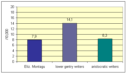 The network members have also been categorised in terms of the sociolinguistic variables social class, age and education. In terms of rank, the Bluestockings hailed from gentry and aristocratic families: the women’s background was mostly lower gentry, whereas nearly all the aristocrats were men. They were mostly middle-aged and older; the women were generally younger than the men by a decade or more. They were also well educated in that most men had received a classical education, whereas the women had been taught within the family and continued to school themselves.